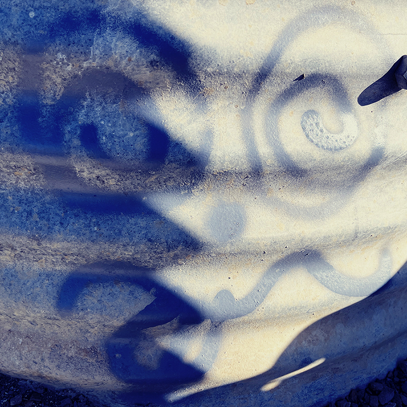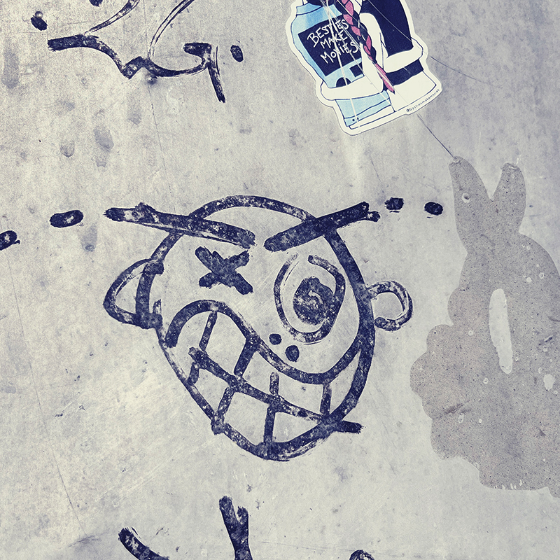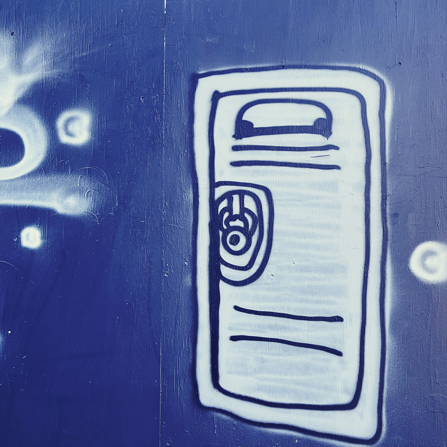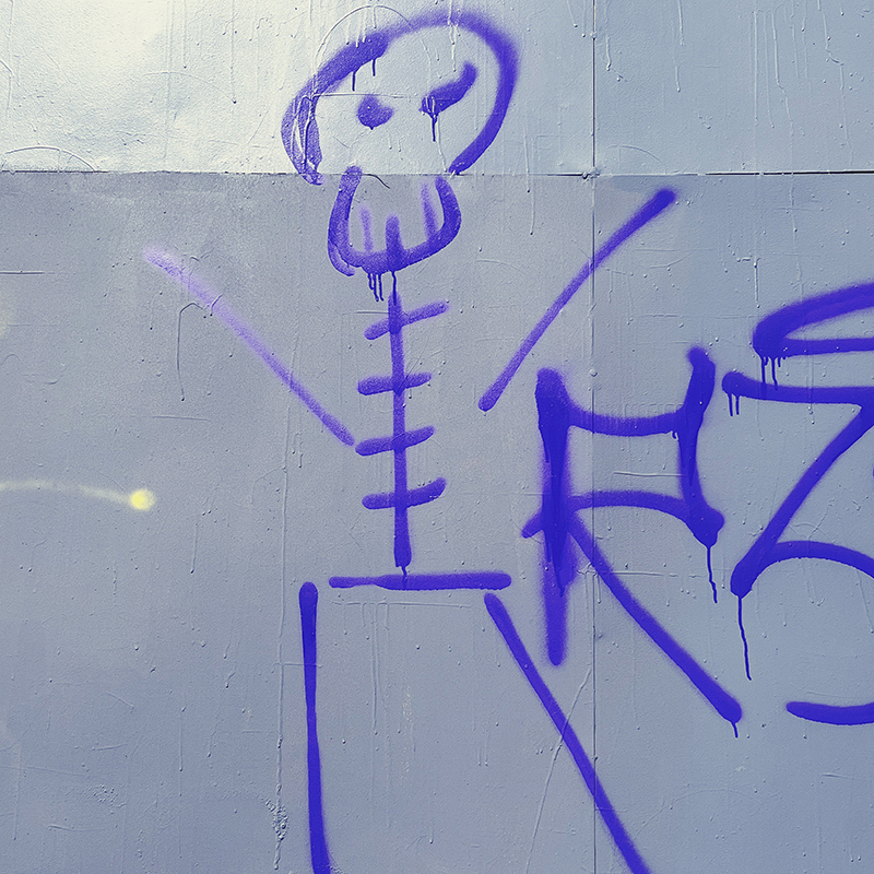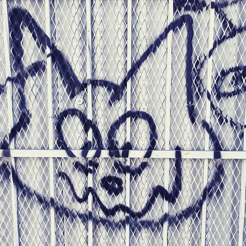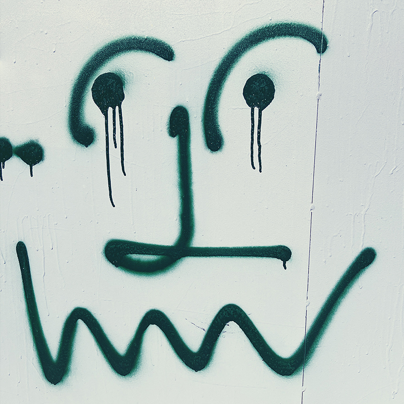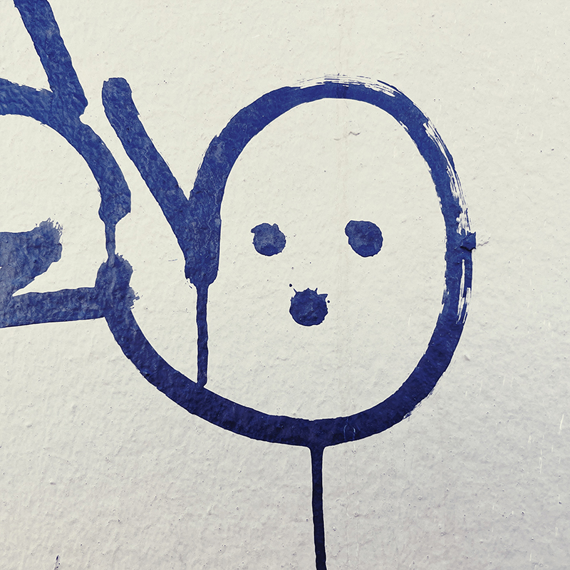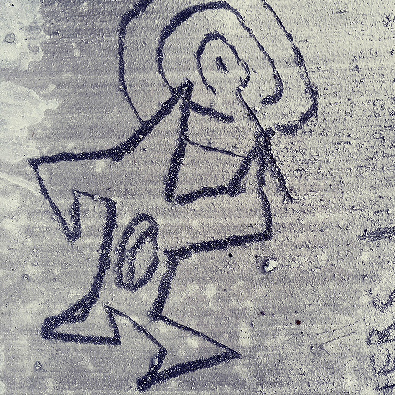 Swiggles become faces / Faces populate walls / Everywhere / Be it in the streets or on the trails / Urban angst / Or humor / It is hard to resist / Making an image / To document the moment / As later the markings will disappear.